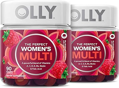 OLLY Womens Multivitamin Gummy, Vitamins A, D, C, E, Biotin, Folic Acid, Chewable Supplement, Berry Flavor, 90-Day Supply - 180 Count